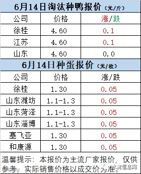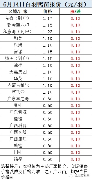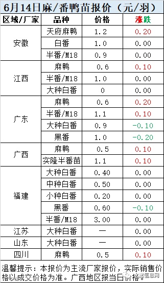一、6月13日晚至6月14日 白羽肉鸭报价