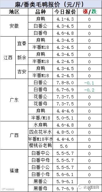 2:南方活禽区域报价弱稳。广东市场报价跌无可跌,弱势报稳。广西市场旱鸭稳定,水鸭追跌调整。临近端午,集中上市,消费不及预期,实际成交价情况一般。
