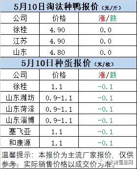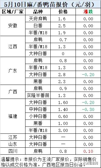 一、5月10日白羽鸭苗报价