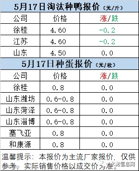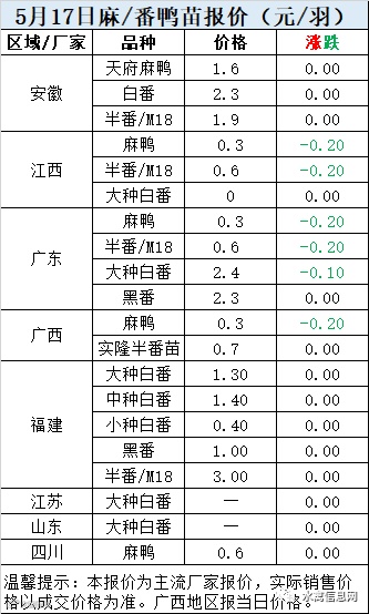 一、5月16日晚至5月17日 白羽肉鸭报价