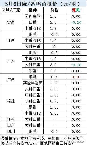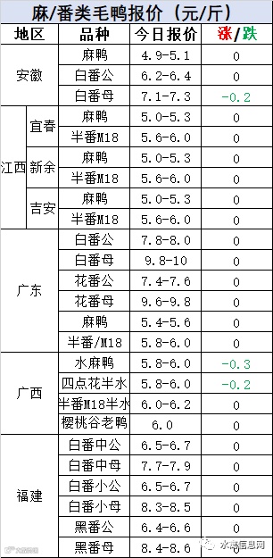 明日麻鸭苗报价稳定。半番鸭苗报价稳定。