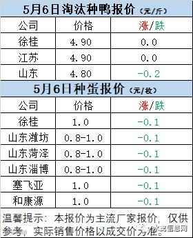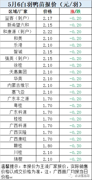 一、5月5日晚至5月6日 白羽肉鸭报价
