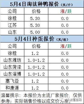 一、5月3日晚至5月4日 白羽肉鸭报价