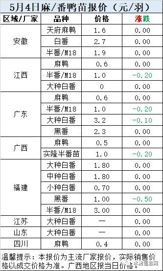 明日麻鸭苗报价稳定。半番鸭苗报价下滑2毛。