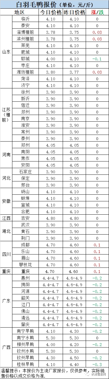 1:今晚北方分割鸭区域报价整体稳定,局部震荡调整。节后冷藏走货放缓,产品价格面临下滑压力较大,冷藏对市场鸭价支撑减弱。