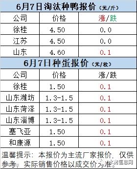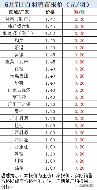 一、6月6日晚至6月7日 白羽肉鸭报价