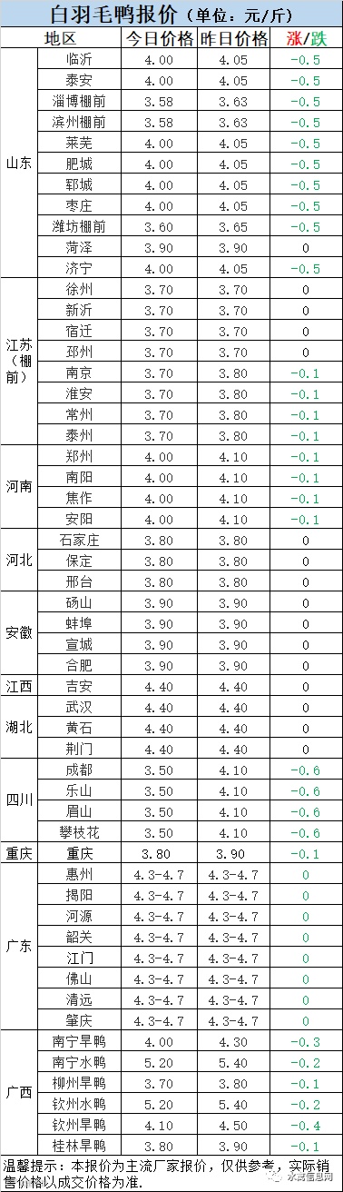 2:受恶劣天气影响,南方活禽区域毛鸭价格今晚亦全面下调。