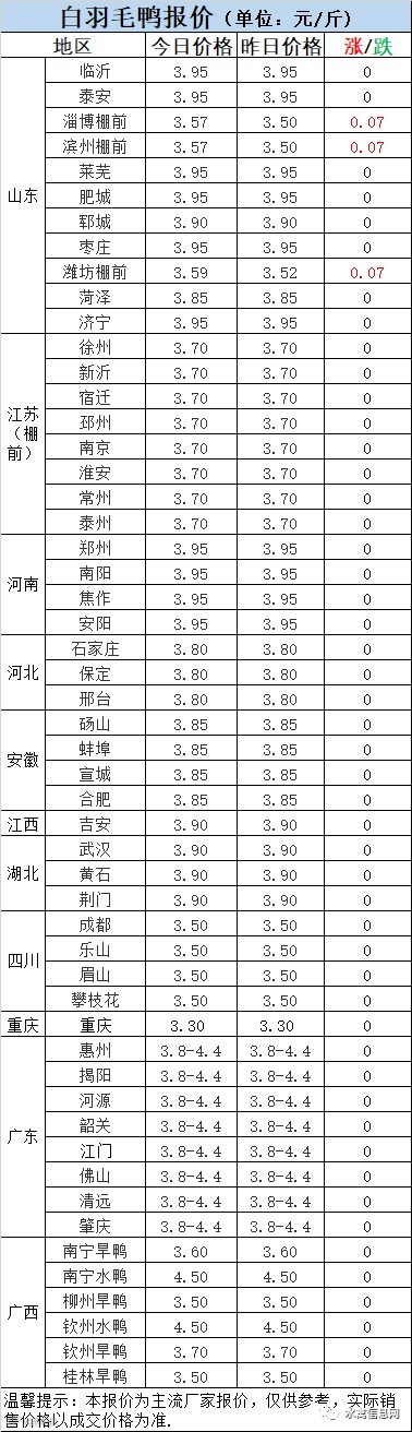 1:今晚北方毛鸭报价整体稳定,山东棚前连续上调。疾病严重,饲料高位,导致合同鸭回收成本持续高位,产品低位运行,冷藏日子依然艰难。