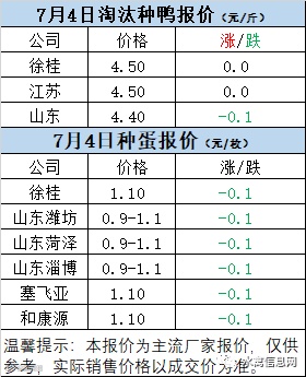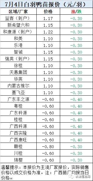 一、7月4日白羽鸭苗报价