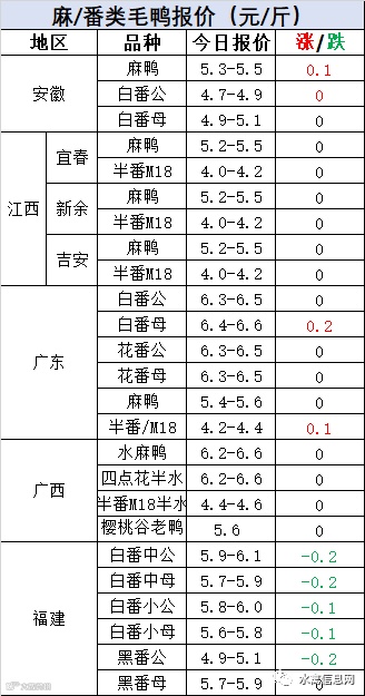 明日麻鸭苗报价小幅上涨。半番鸭苗稳定。