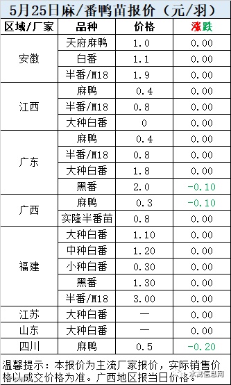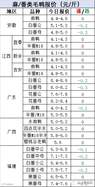 明日麻鸭苗报价局部弱势,半番鸭苗报价稳定。