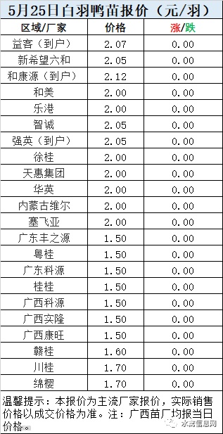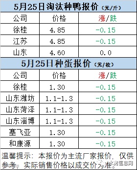 一、5月24日晚至5月25日 白羽肉鸭报价