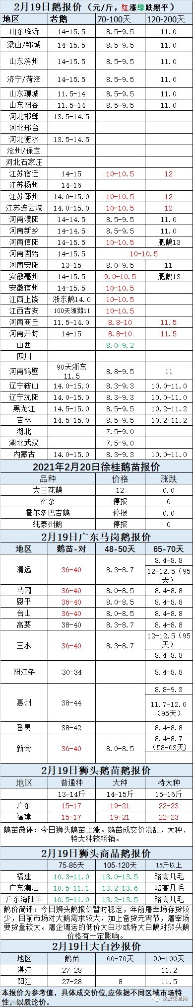 2021年2月19日鹅苗价格