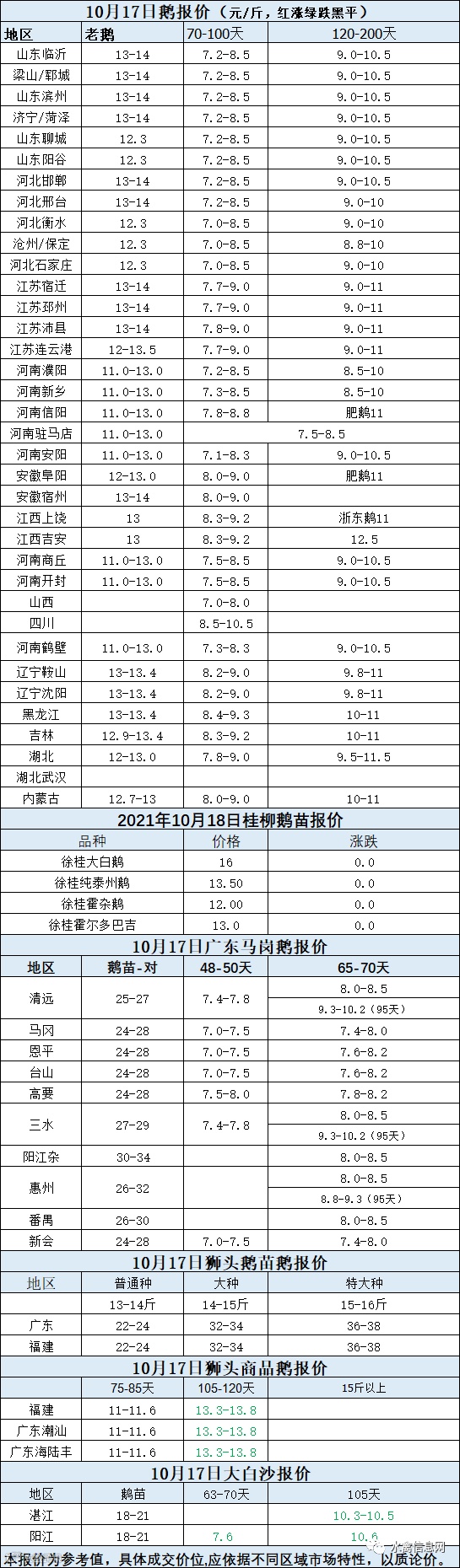 2021年10月17日各品种鹅苗价格