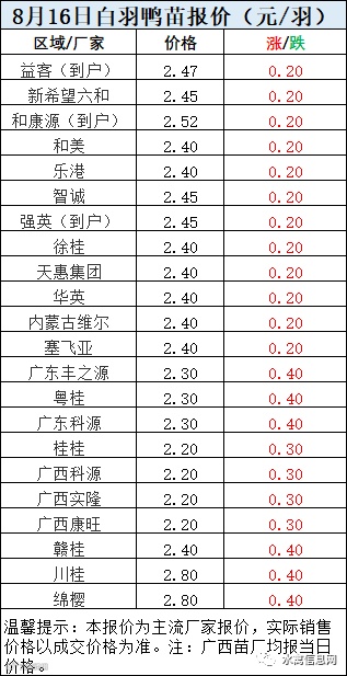 一、8月15日晚至8月16日 白羽肉鸭报价