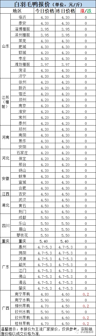 今日淘汰鸭报价局部下滑,受疫情影响,毛鸭价格震荡调整。