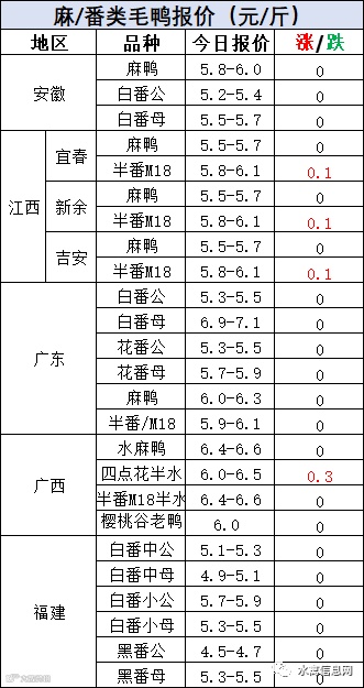 明日麻鸭苗报价上涨0.1元/羽,半番鸭苗报价继续上涨0.1元/羽。