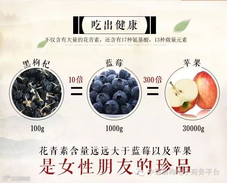 100克黑枸杞中的花青素=2斤蓝梅+42斤草莓!