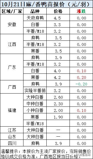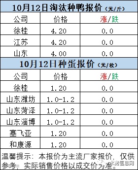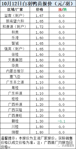 一、10月12日白羽鸭苗报价