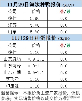 一、11月29日白羽鸭苗报价