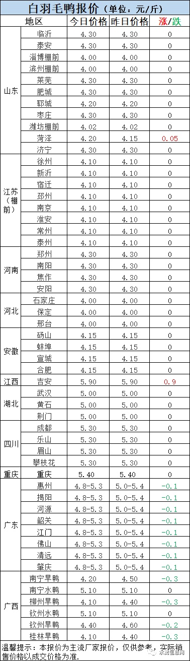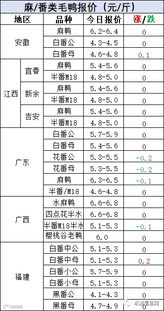 明日麻鸭苗报价上涨0.1元/羽。半番鸭苗报价上涨0.2元/羽。