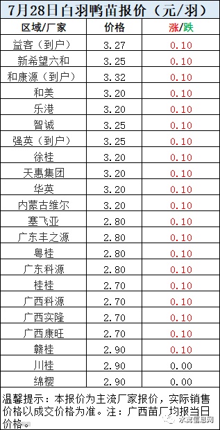 一、7月28日白羽鸭苗报价