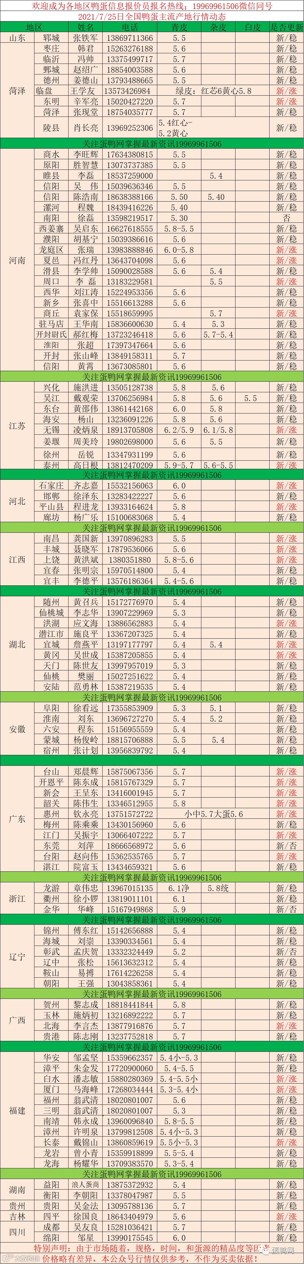 2021年7月25日鲜鸭蛋价格:初产至大蛋5.4(鸭蛋价格仅供参考)