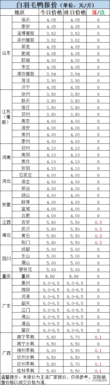 2:南方白鸭活禽今晚报价继续走强。双节来临,但仍要警惕集中出栏砸价。
