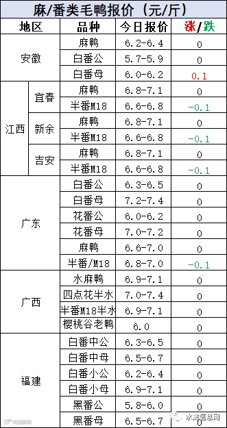明日麻鸭苗报价稳定,半番鸭苗报价下滑0.3元/羽。