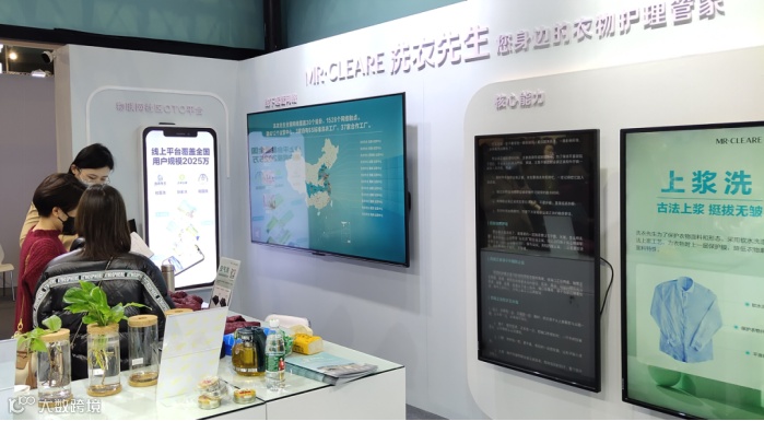 洗衣先生以全新的洗护生态新模式赋能服装后市场数字化升级,围绕服装产业链,在展会现场提供从生产、销售、物流、仓储、服务、售后等全流程数字化解决方案,为行业生态发展全面高效赋能。