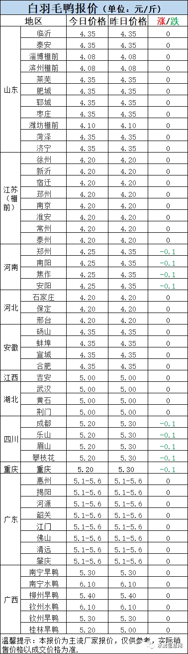 2:南方白鸭报价今晚涨跌不一。