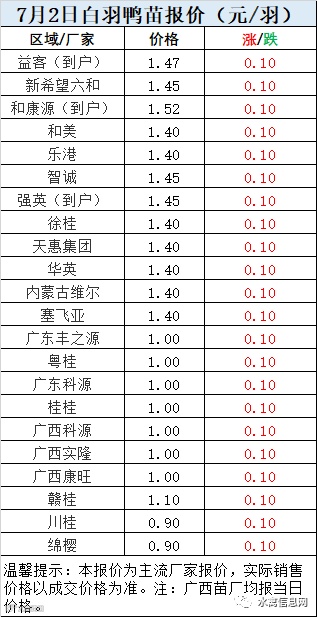一、7月1日晚至7月2日 白羽肉鸭报价