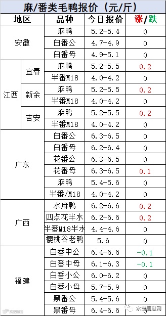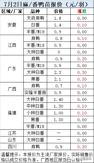 明日麻鸭苗报价小幅上涨。半番鸭苗稳定。