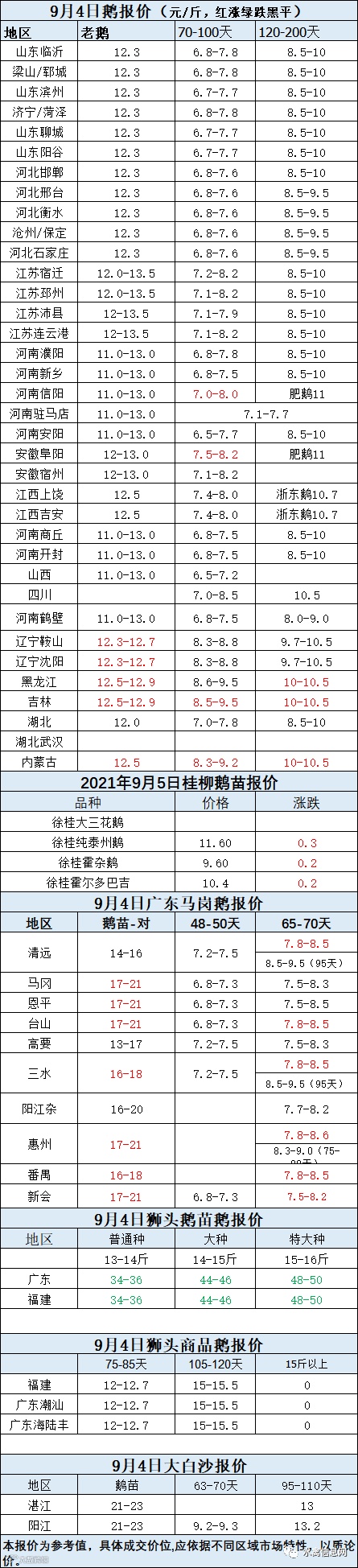 2021年9月04日商品鹅蛋价格(元/斤)