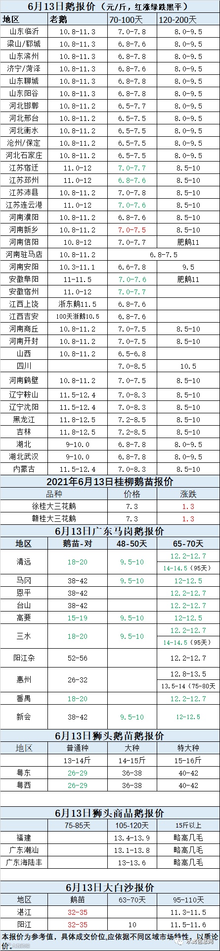 2021年6月13日鹅种蛋价格(元/枚)停报