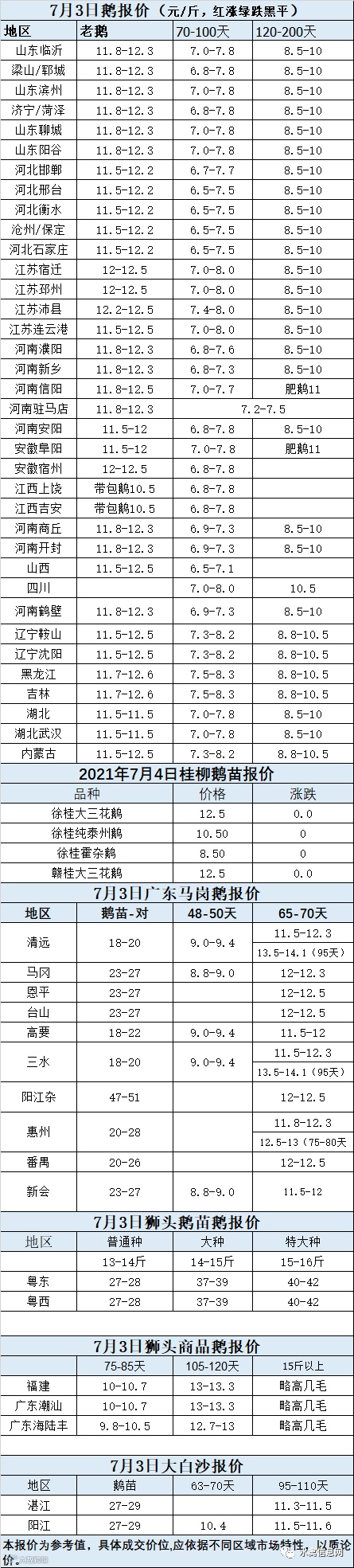2021年7月03日鹅种蛋价格(元/枚)停报