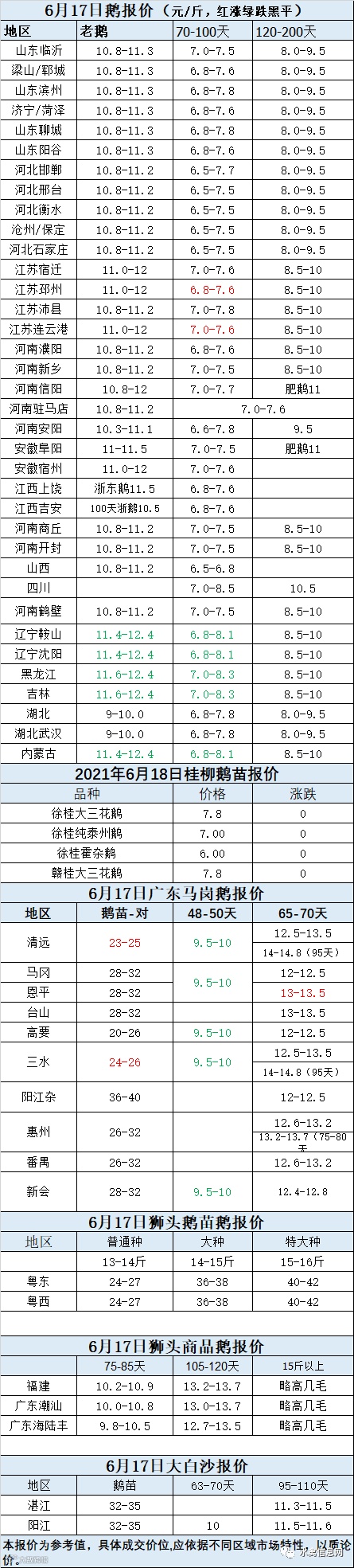 2021年6月17日鹅种蛋价格(元/枚)停报