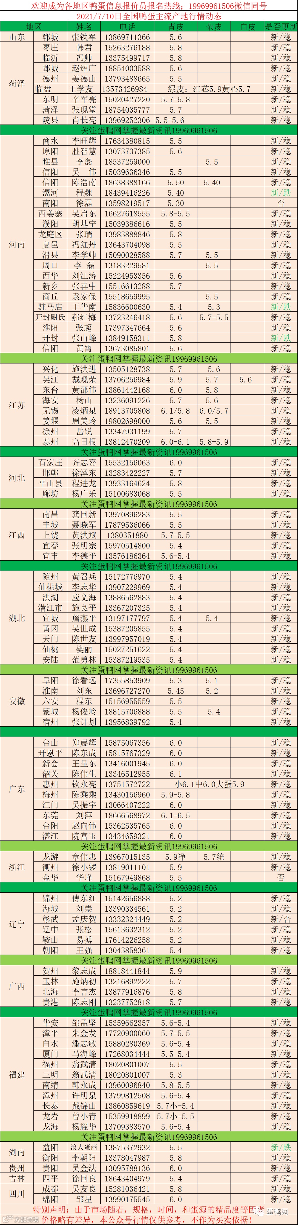 2021年7月10号鸭蛋报价