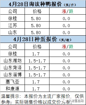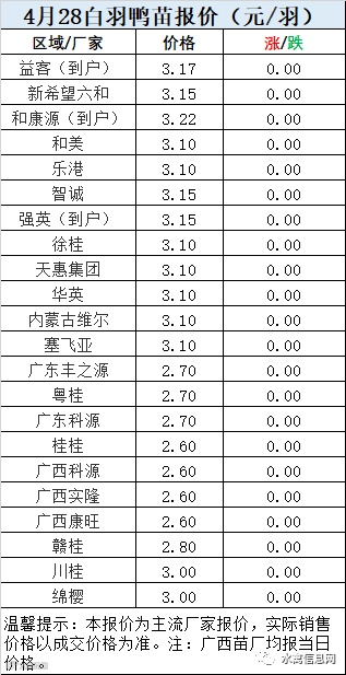 一、4月27日晚至4月28日 白羽肉鸭报价