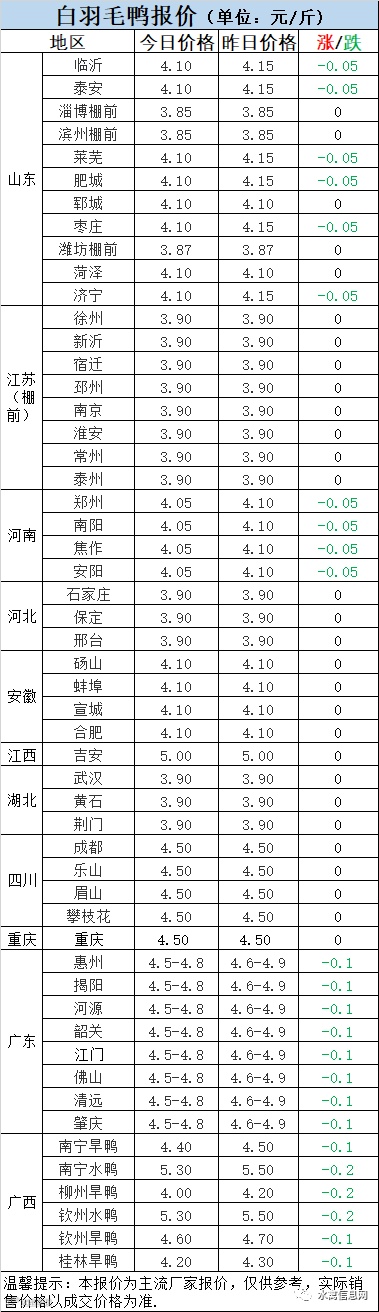 2:南方活禽区域,五一鸭预备上市。广东今晚整体继续下滑。广西毛鸭追跌下调。