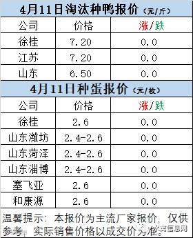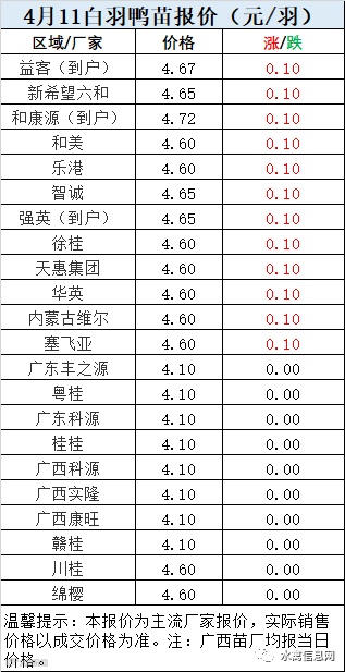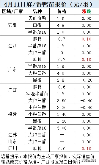 一、4月10日晚至4月11日 白羽肉鸭报价
