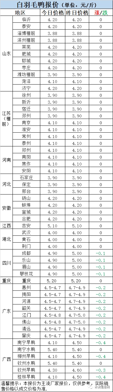 2:南方活禽区域,震荡调整。广东市场鸭持续下滑,广西旱鸭连续下滑。