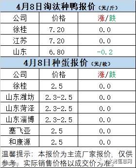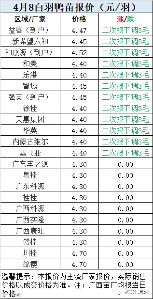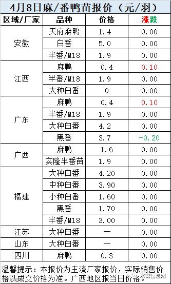 一、4月8日白羽鸭苗报价