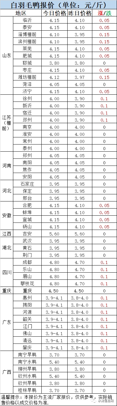 明日半番鸭苗报价稳定,半番鸭苗进入冷静区间,但仍有部分调整空间。