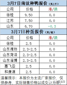 一、3月6日晚至3月7日 白羽肉鸭报价