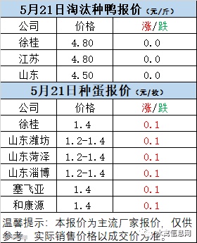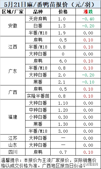 一、5月21日白羽鸭苗报价
