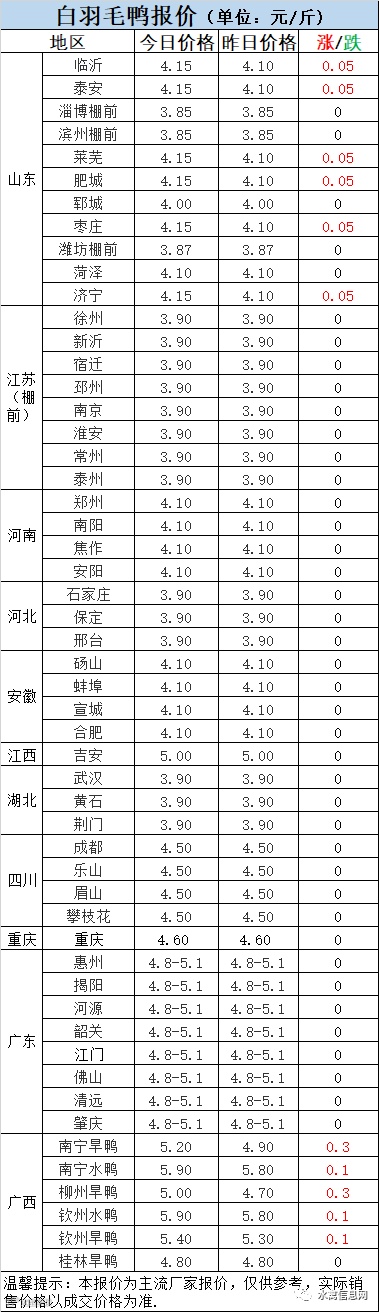 2:南方活禽区域,五一鸭预备上市。广东市场出价暂时较乱,今晚整体成交略有上升。广西毛鸭连续反弹。