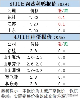 一、3月31日晚至4月1日 白羽肉鸭报价