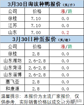 一、3月29日晚至3月30日 白羽肉鸭报价