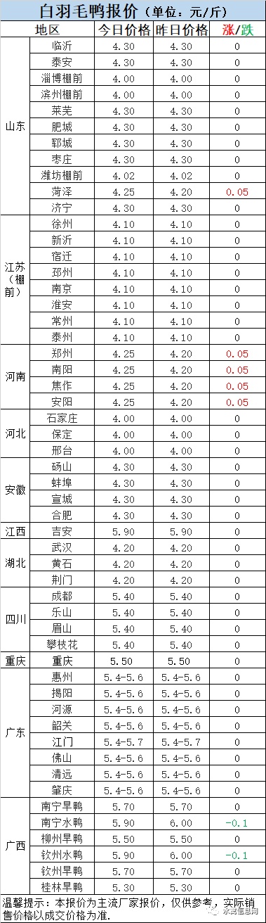 2:南方活禽区域,广东市场震荡调整,广西水鸭小幅下滑。整体市场进入拉锯状态,且情绪化较重。